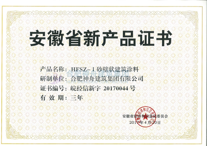 “竣捷”牌勻質(zhì)改性防火保溫板、耐堿玻璃纖維網(wǎng)格布、真石漆通過(guò)安徽省經(jīng)濟(jì)和信息化委員會(huì)的評(píng)審,榮獲了安徽省新產(chǎn)品榮譽(yù)證書(shū)